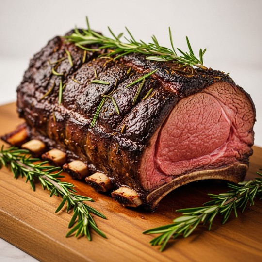 Oven-ready Heartland Gold® bone-in rib roast, expertly trimmed by our in-store butchers, seasoned with olive oil, salt, pepper, and a rosemary sprig, and presented in a foil pan with heating instructions for an easy, flavorful holiday meal.